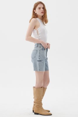 Mia Striped Mini Skirt Front zip, hook close Elastic band on back Product Specification : 100% Polyester Flat measurement : […]